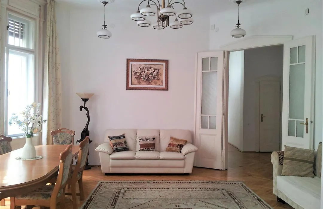Spacious 140 m² Elegance In The Heart Apartment is located in the 05. Belvaros - Lipotvaros district, and Vorosmarty Square tube station is only 10 minutes' stroll away. Along with storage for belongings the 3-bedroom apartment also has city vistas.